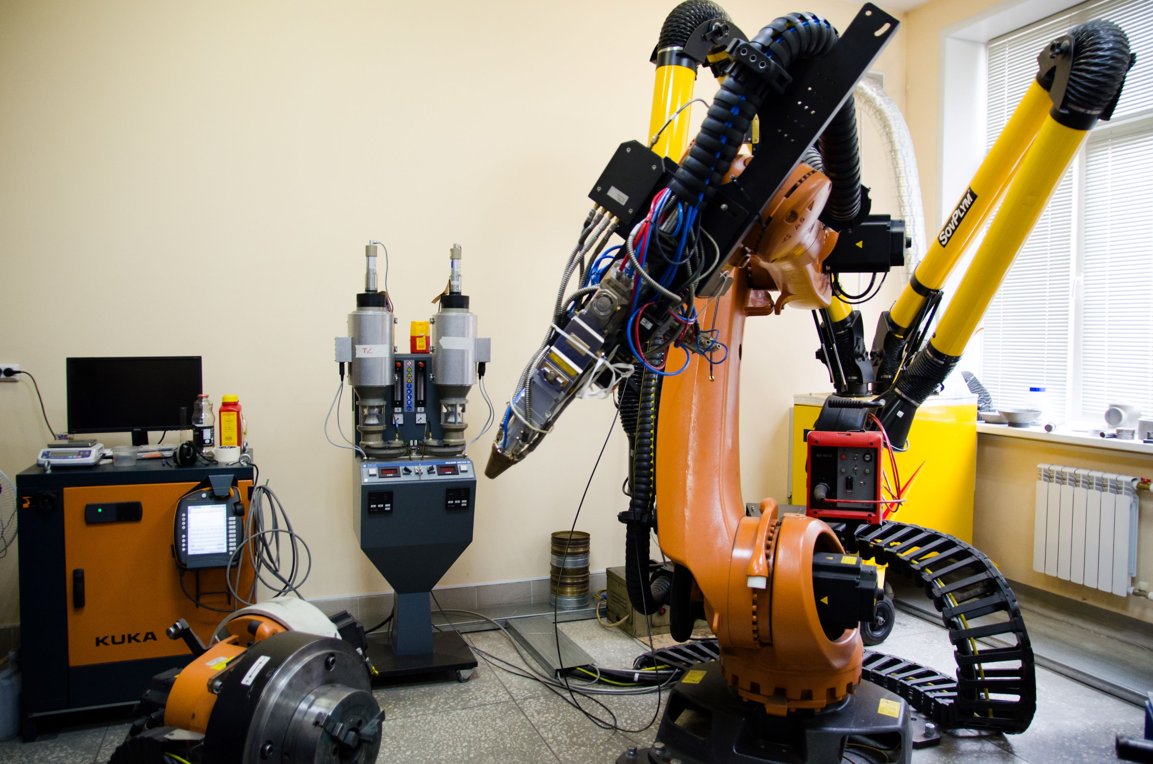 - Создание роботизированных комплексов для процессов лазерной наплавки и детонационного напыления (включающих выбор основного и вспомогательного оборудования, создание программного обеспечения)