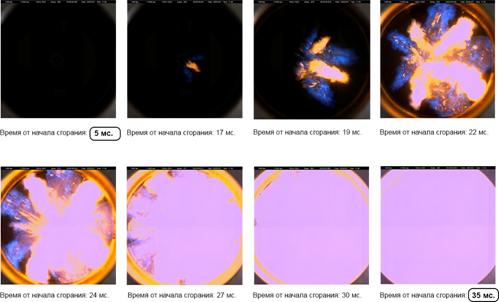 Примеры результатов экспериментальных исследований процесса сгорания в камере сгорания постоянного объема с форкамерно-факельным зажиганием